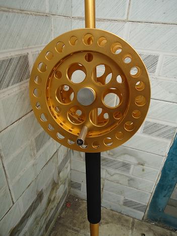一、過河釣簡介 過河釣也稱抬釣,**是用一根較粗的尼龍線由河流、魚塘的此岸架到彼岸去,此線叫著主線或抬線,它在空中懸著并不入水,其功能起著代替手竿的作用,然后在主線上面再聯(lián)結(jié)較細(xì)的釣線(又稱口線)垂入水中釣魚。發(fā)現(xiàn)魚兒咬鉤后,將主線往上一抬,牽動(dòng)釣線(口線)移位,魚兒便上鉤了,故稱“抬釣”。抬釣的好處是不受河流和魚塘的影響,可以垂釣任何一個(gè)部位不受限制,是垂釣中的重武器。 二、過河釣基本操作 先將主線全部繞在下一個(gè)繞線輪上面,另一個(gè)輪暫時(shí)空著。 2、將支線加插到彼岸土中,固定穩(wěn)當(dāng),不能動(dòng)搖。 3、將主線由此岸牽到彼岸去,經(jīng)過支線架上的小滑輪后,再由彼岸牽回來,將 線頭結(jié)在空著的繞線輪上。這樣,架好后的一根主線經(jīng)過彼岸的滑輪折回后**變成了 兩根平行、懸空并可來回交換的主線。即由一邊的繞線輪放線出去后,立即又被纏在 另一邊的繞線輪上收回來。左邊放出、右邊收回;左邊收回、右邊放出,來去自由。 4、在主線上粘有膠布印記的地方,掛上一個(gè)小袋。小袋掛法與鉤線掛的掛法相 同,即用環(huán)形針狀的掛勾掛上,便于摘。恍〈鼉(nèi)裝上誘餌后,隨主線送到水面中間 適當(dāng)部位,用手抖動(dòng)主線,袋中誘餌便落入水中形成窩子。準(zhǔn)備有幾條釣線,**喂幾 個(gè)窩子。一般上四、五根釣線足夠了,太多摘取不方便,太少影響上魚率。喂完窩后 將小袋摘下。